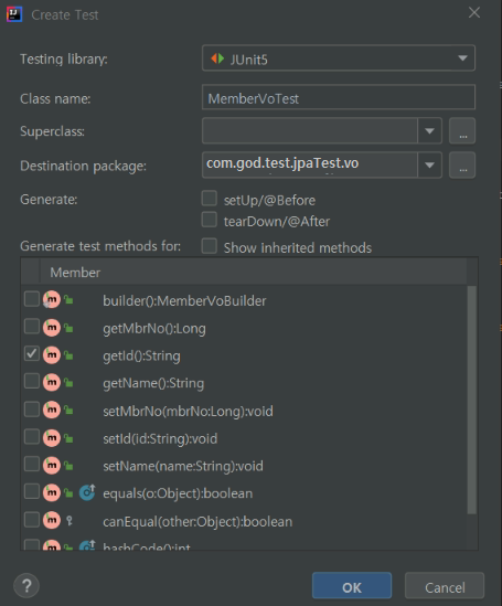 - 나와 같은 경우는 JPA 또는 MVC 패턴에서 사용되는 DTO(Vo, Domain)을 테스트 해보려 한다.